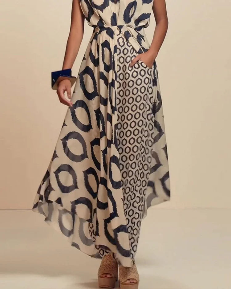 Completo Due Pezzi Casual Senza Maniche a Fantasia con Vita Sottolineata