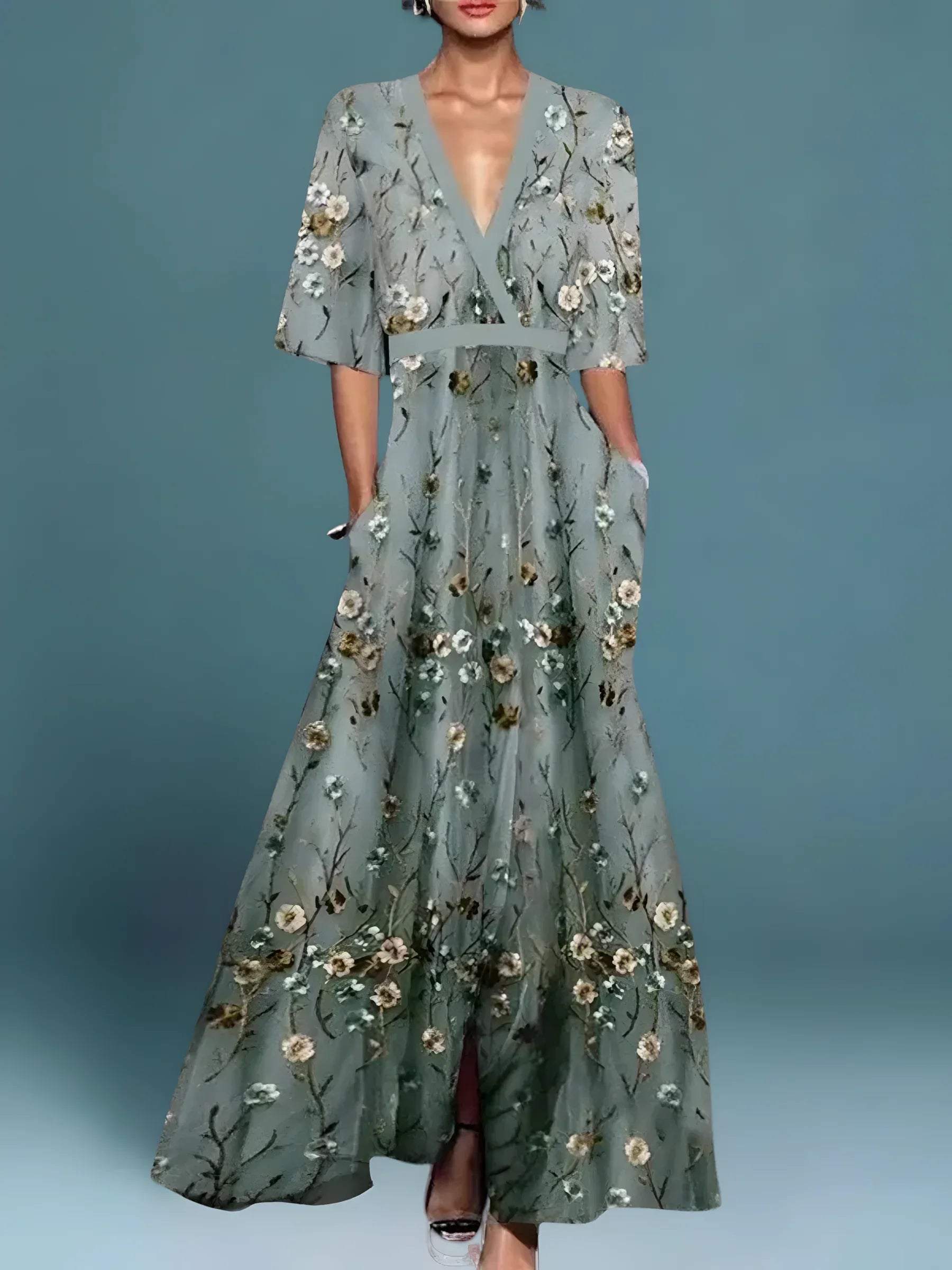 Serena | Abito Elegante a Portafoglio con Motivo Floreale